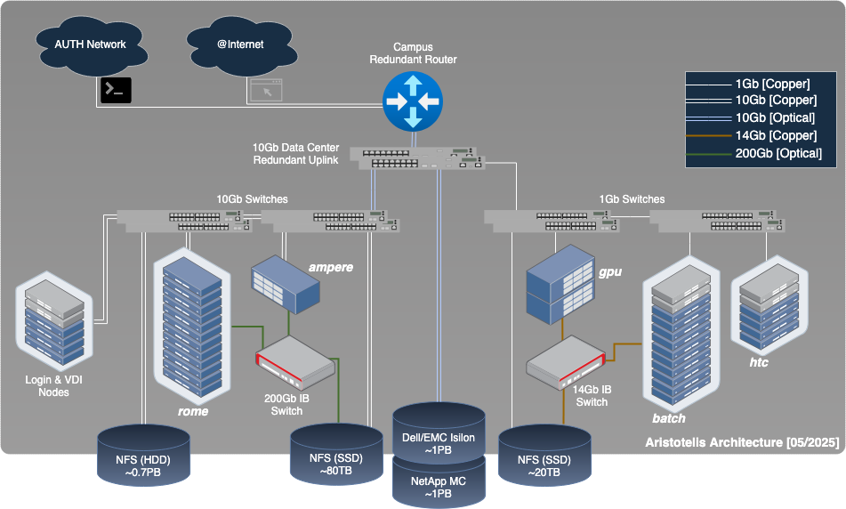 :point_right: Πιο λεπτομερής καταγραφή: https://hpc.it.auth.gr/nodes-summary/
